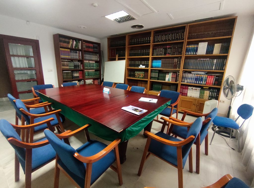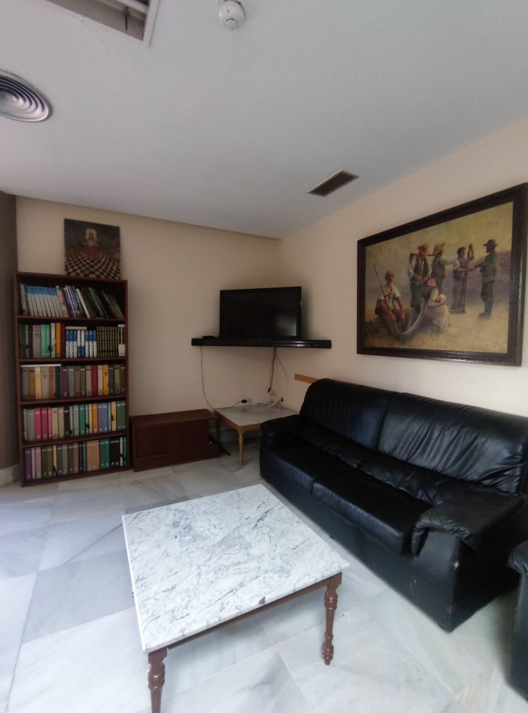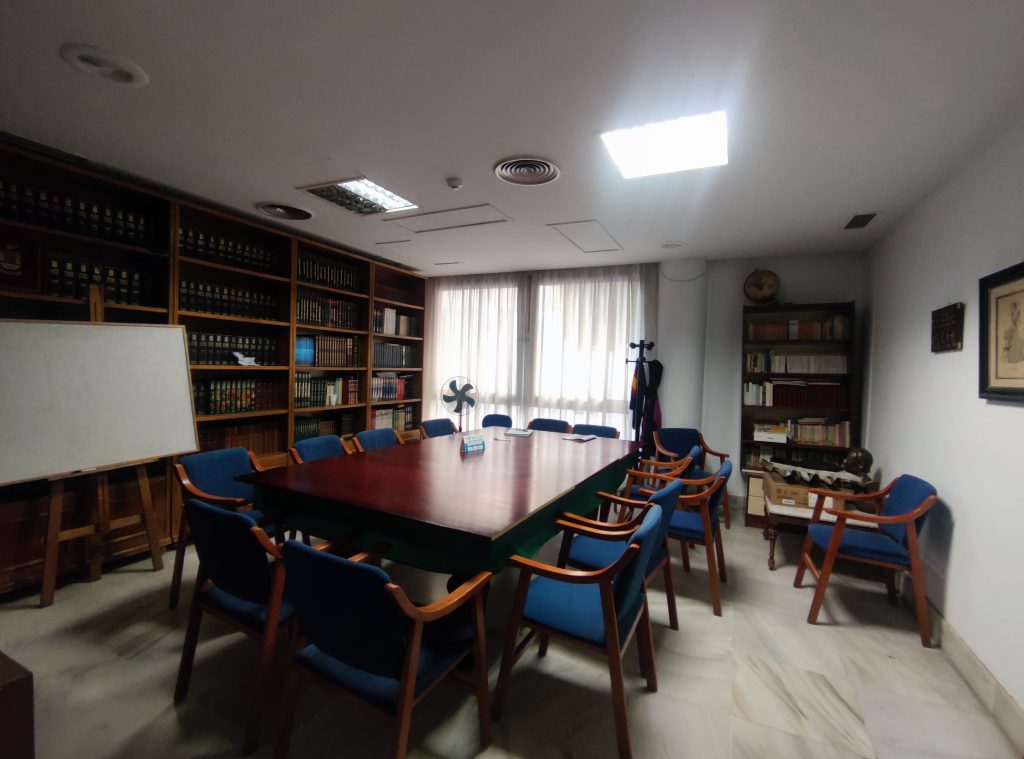 Situada en la primera planta, con una buena luminosidad gracias a los grandes ventanales. Sala preparada para pequeñas reuniones, con aproximadamente 70m²