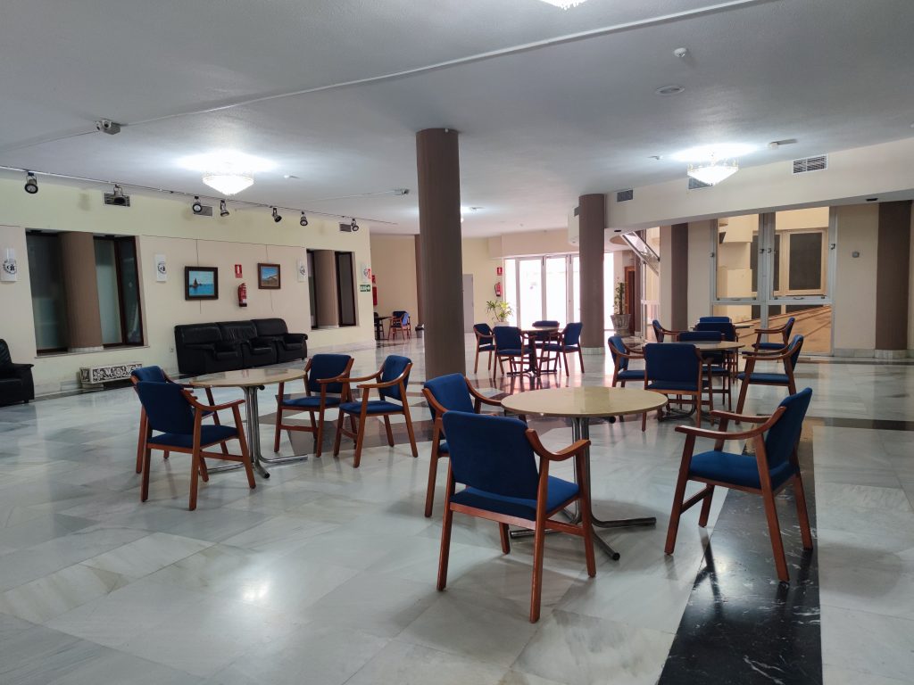 Situada en la planta baja accesible desde el Hall o desde la puerta principal ubicada en la entrada de las instalaciones, por la puerta principal.